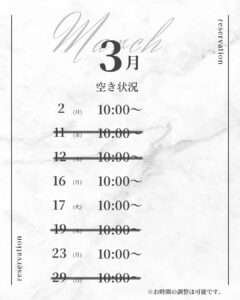 【2026年3月】SANAEレッスン枠のご案内【受付中】 2026.02.17 2026年3月のSANAEのレッスンは受付中でございます。 お問い合わせは、公式LINEもしくはお問い合わせフォームからお願いいたします。 他スタッフのご予約枠は、2月も受付中です! ホットペッパービューティーにてご確認ください。 Post Share Hatena Pocket RSS feedly Pin it 【2026年2月】SANAEレッスン枠のご案内【満席】 前の記事